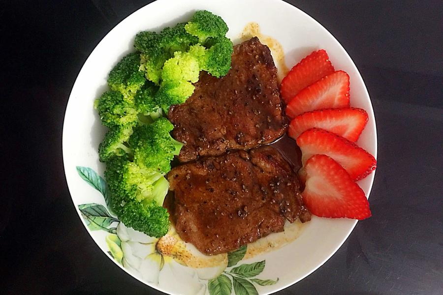 芦笋、牛扒、黄油、盐、大蒜、黑胡椒粉、黑椒汁