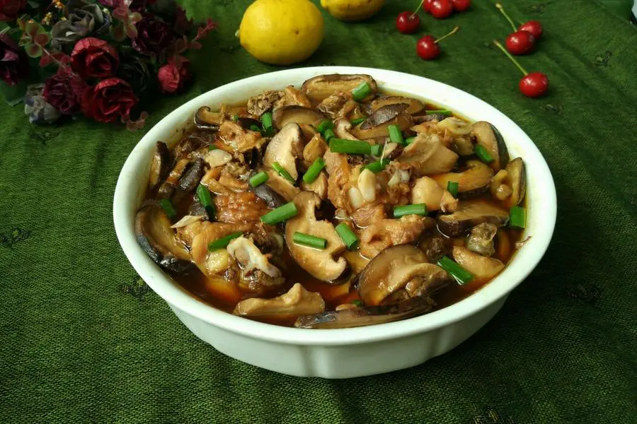 鸡腿、香菇、葱、冰糖、姜、辣椒、蚝油、酱油、蒜末、绍兴酒