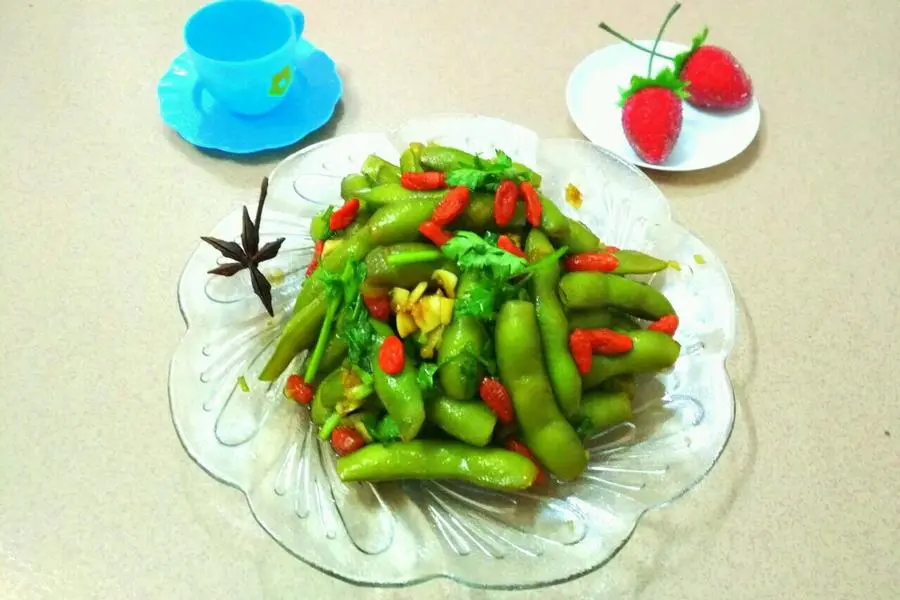 毛豆、水、姜、干辣椒、八角、桂皮、香叶