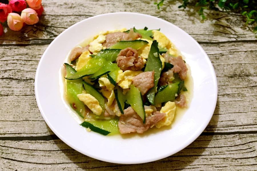 猪肉、鸡蛋、黄瓜、温水、料酒、腌肉料:、盐、盐、生抽、油、油、鸡精、鸡精、淀粉