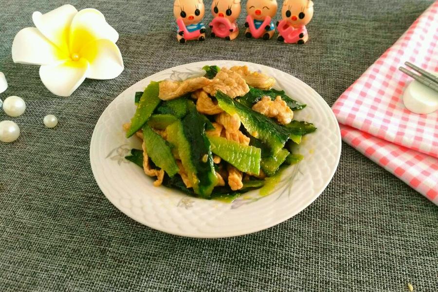 黄瓜、肉、葱、姜、料酒、盐、生抽、鸡精