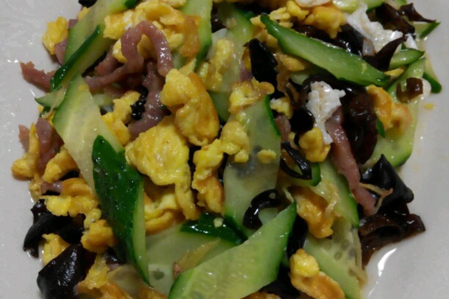 黄瓜、土鸡蛋、精肉、木耳