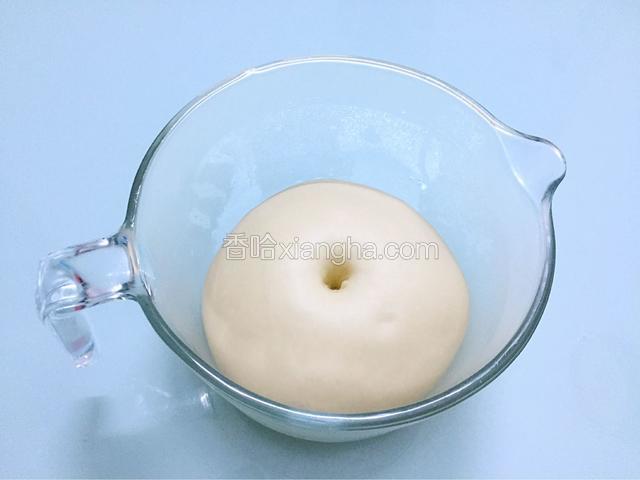 6.手指沾水或面粉戳一小洞,不反弹不回缩即发酵成功