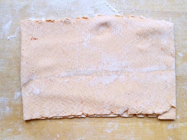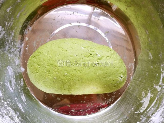 5.揉成面团,尽量硬一些,菠菜汁可以剩一点,但不能把面团活软了。