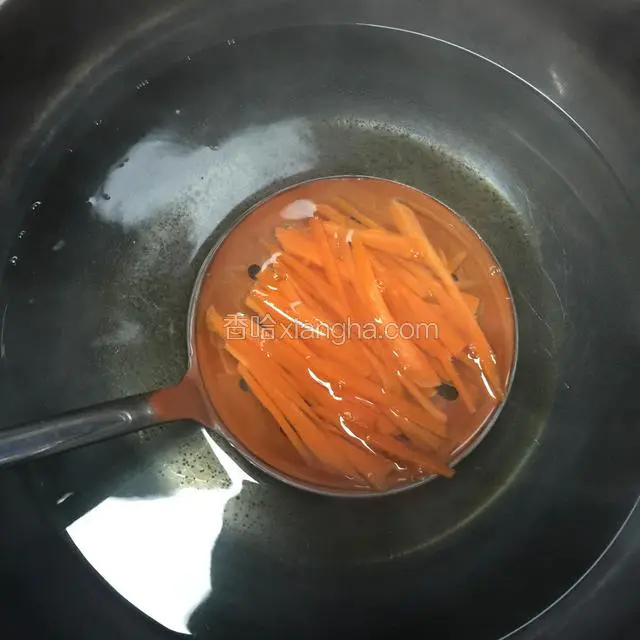 6.胡萝卜切成丝 用水过一下 喜欢吃生一点的也可以不用过水