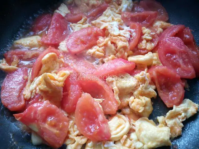3.锅中水烧开后,放入西红柿焯烫一分钟。