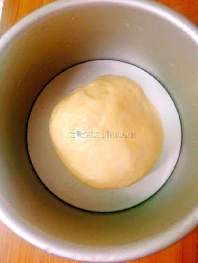 6.揉成光滑的面团,放在容器内盖上盖子或是保鲜膜,放在温暖处自然发酵。(也可以用面包机发酵,烤箱发酵,或者放在高压锅隔层上,锅内要放适量的热水,利用水蒸气进行发酵)