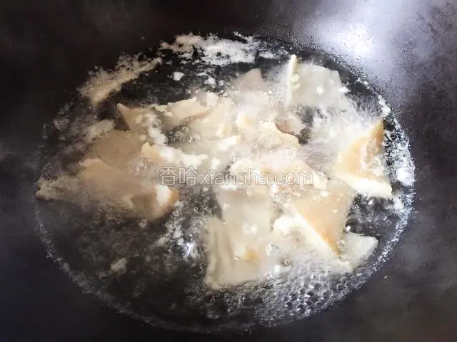3.肉皮锅锅中添水,放五香粉、生抽、料酒、盐将肉皮煮熟