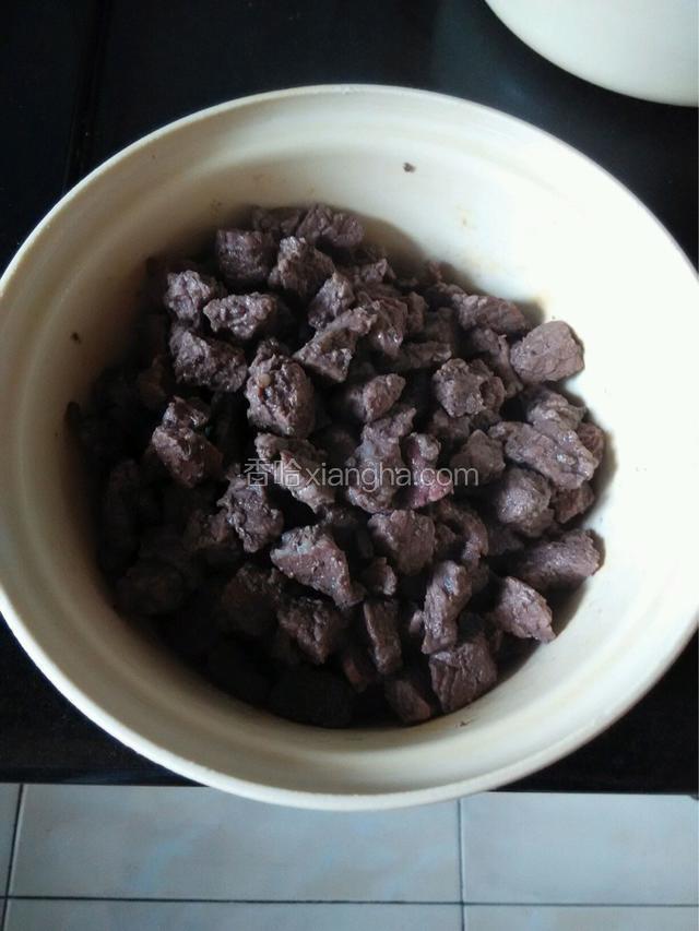 1.牛肉洗净剔除筋膜,切成一厘米左右的肉丁。