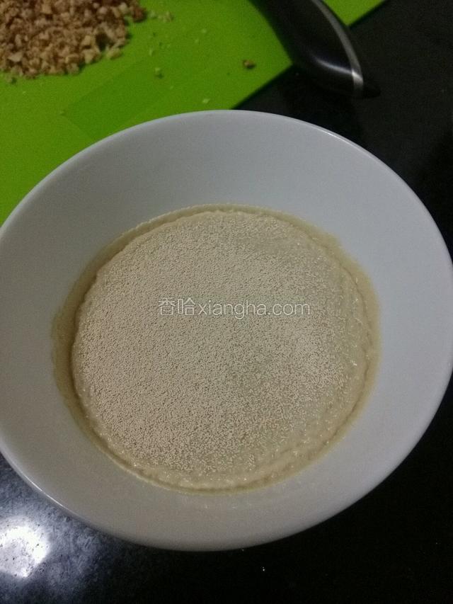 2.酵母温水静置10分钟。