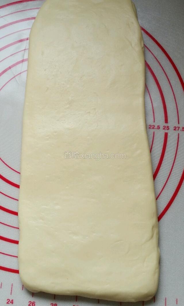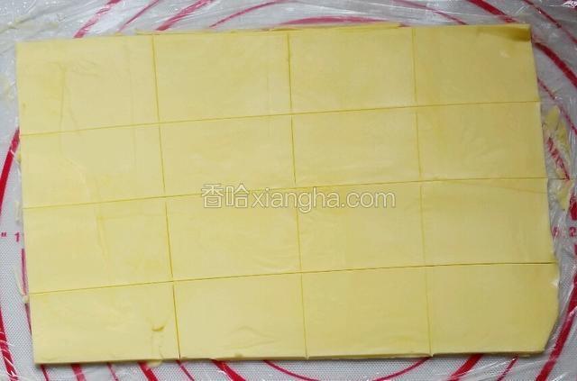4.将180克裹入用黄油切成小片,放入保鲜膜,擀成片状备用