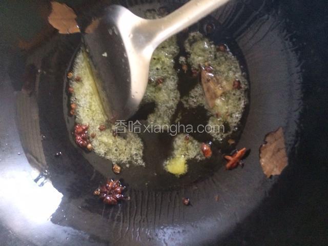 4.从起锅,放入油,花椒,大料,香叶,酱油,白糖,熬糖色,糖色熬好以后放葱姜蒜,放入鸡爪,倒入煮鸡爪的汤