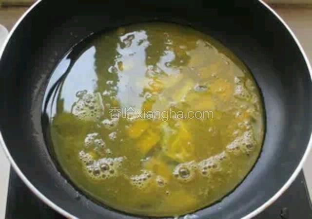 6.倒入鸡蛋液,要用中小火,不要用大火