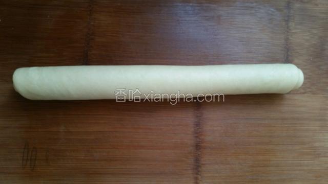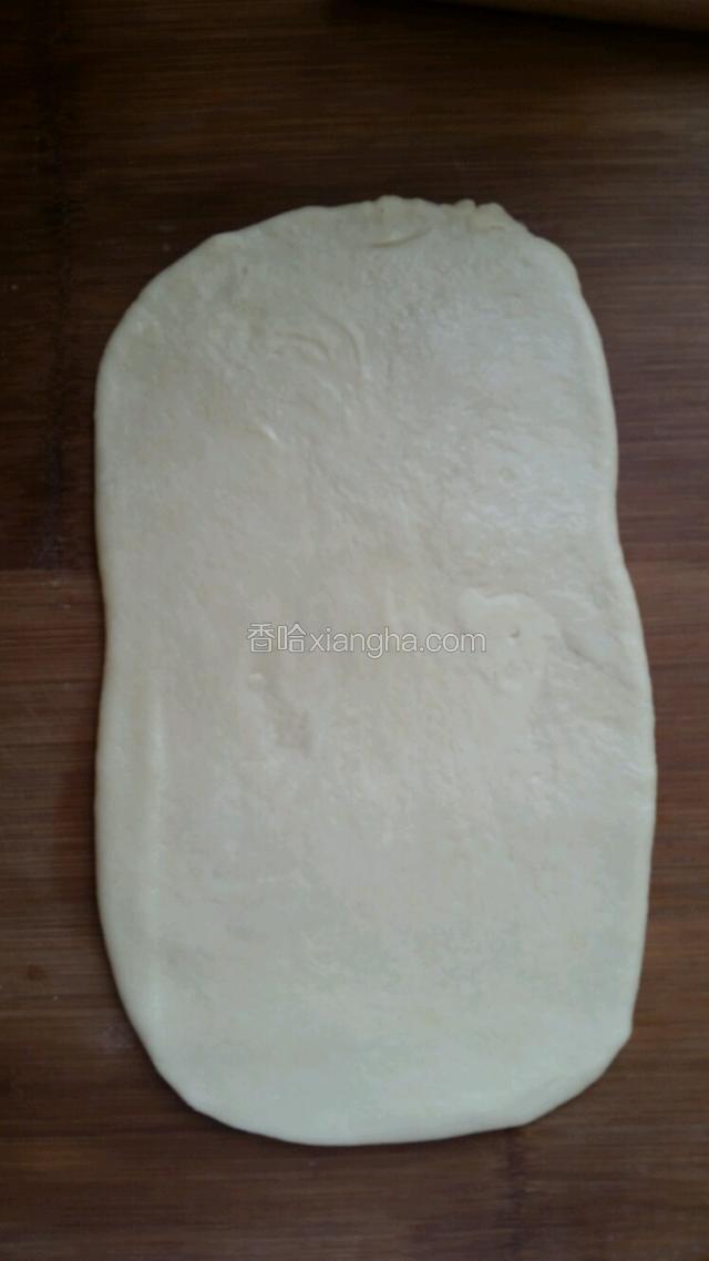 4.包好之后,收口朝下,然后用擀面杖把面团擀成长方形