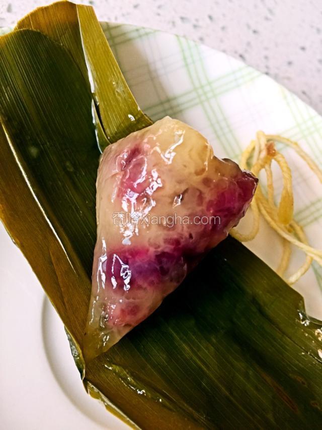 2.西米用水稍微冲洗,拌入紫薯里,➕炼乳