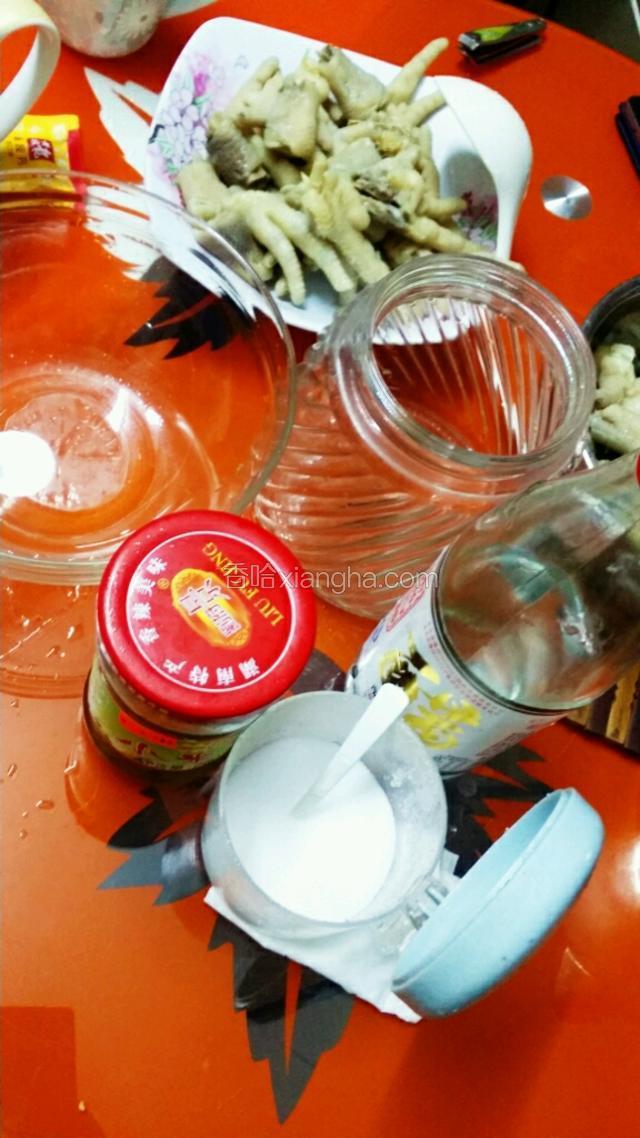 1.把鸡爪先解冻,泡洗20分钟,准备好材料,备用