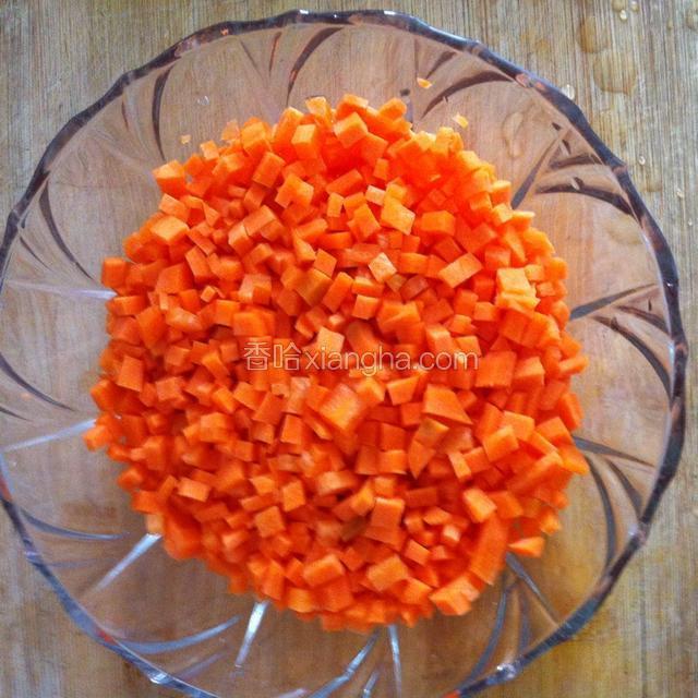 1.胡萝卜切丁备用。