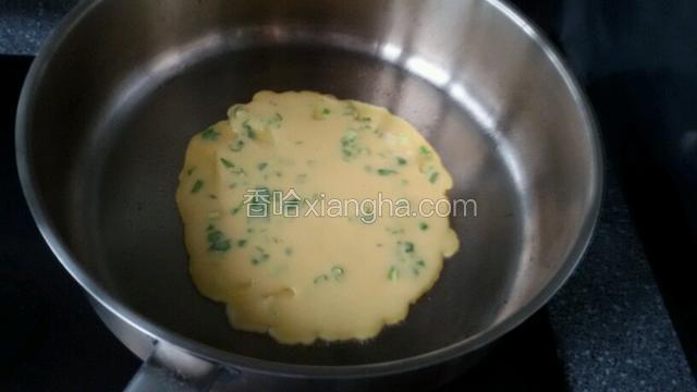 6.平底锅预热,抹一层薄油,倒入鸡蛋糊,摇均鸡蛋液盖上盖,两面烙五分钟左右即可熟了