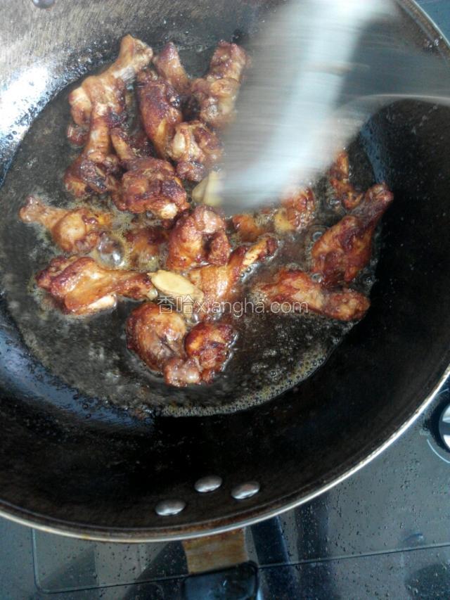 4.加入可乐,鸡腿刚好没入可乐即可,盖上锅盖用中火焖