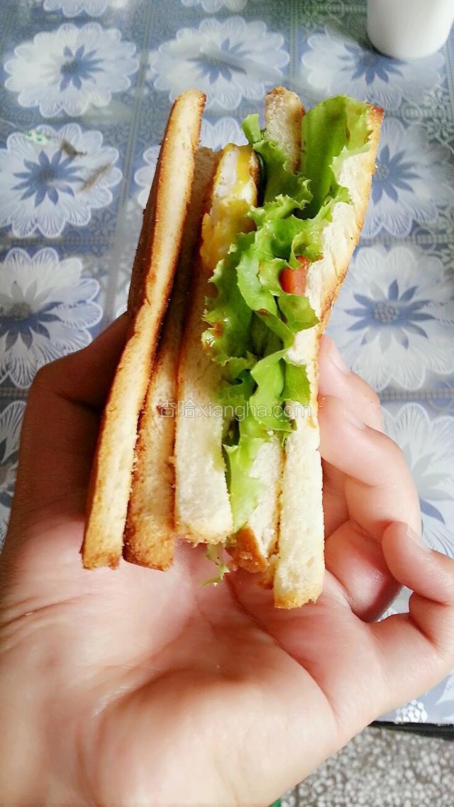 4.电饼铛刷一点油,煎鸡蛋,起司,火腿