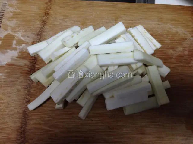 6.锅内放油烧至七八分热度,将沾满面糊的茄条放入锅内炸