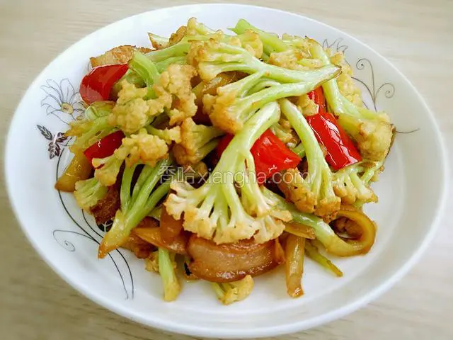 1.将花菜掰开一朵朵的然后用小刀划小块清洗干净后控水备用