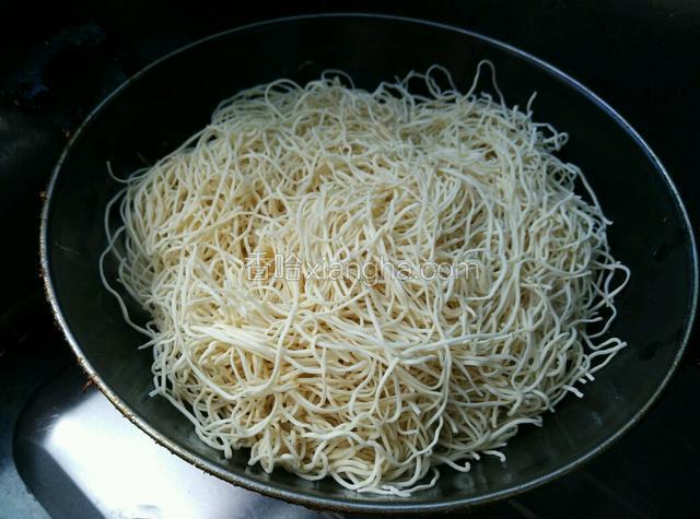 6.将菜炒至7成熟,加入适当水,形成汤汁,并加入焖面,将焖面摊在菜上。