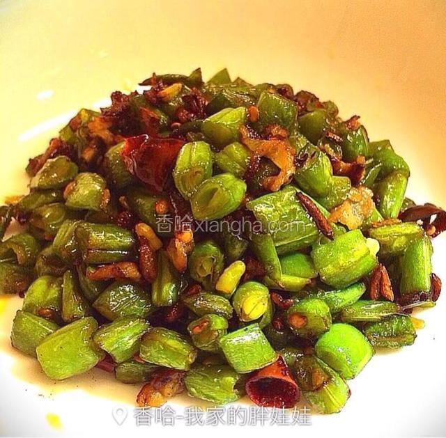 6.豆角炒到七八成熟时 再加入盐,继续翻炒到熟,最后加少许鸡精