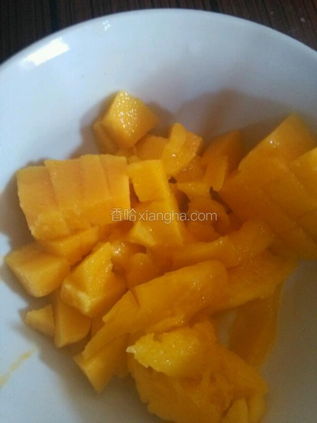 5.手抹水或抹油,这样皮才不会粘在手上,包上芒果,收口放入椰容里,滚一圈就可以装盘了