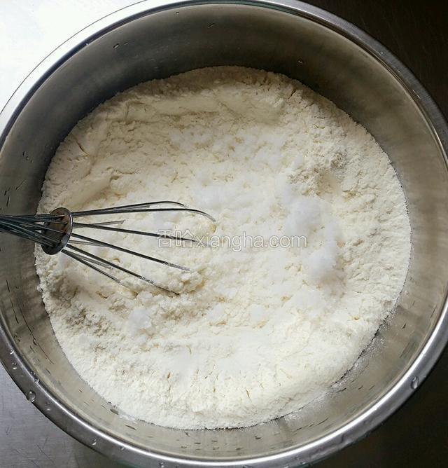 1.先将面粉,白糖和盐混合,搅拌均匀