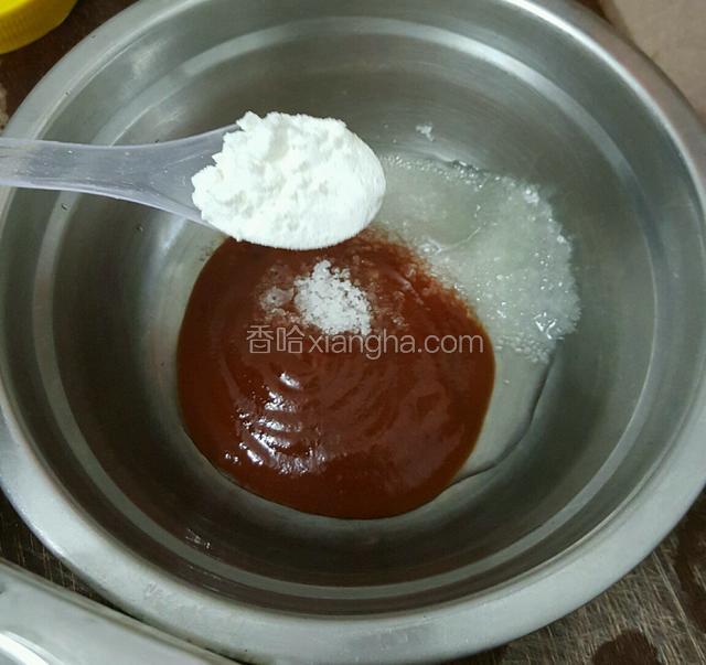 4.10分钟左右将生姜挑出不要,加4大匙玉米淀粉抓均鸡块上粉浆