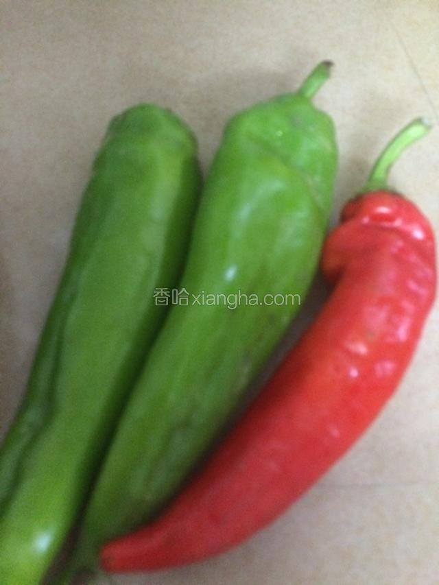 1.如图准备好青红椒,我选的这个只有一点点辣的l
