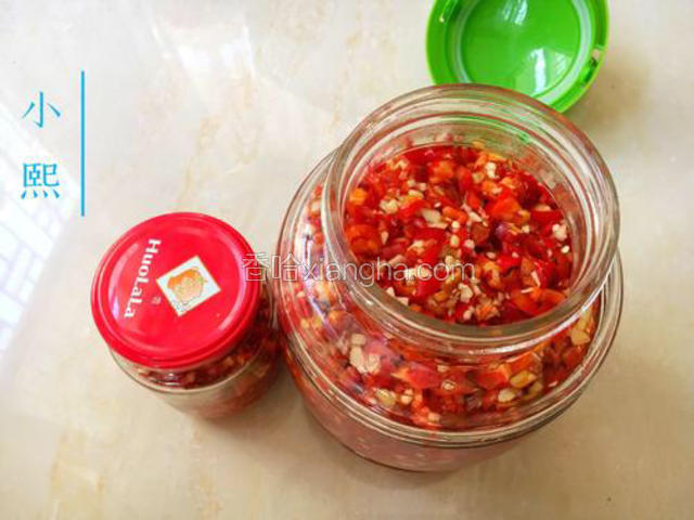 5.下面就是把剁碎的辣椒,姜、蒜放到一起。