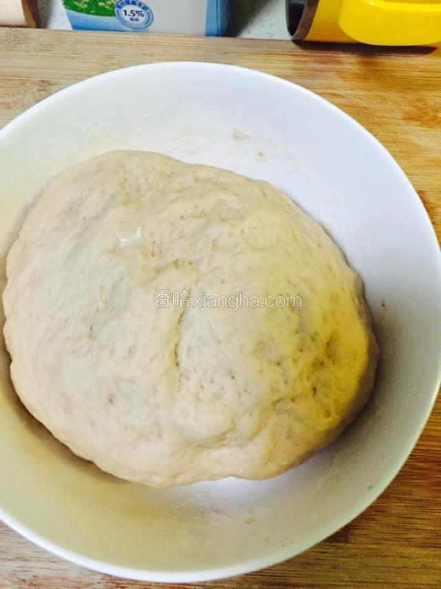 1.面粉加牛奶加发酵粉拌匀,和成不粘手的面团。