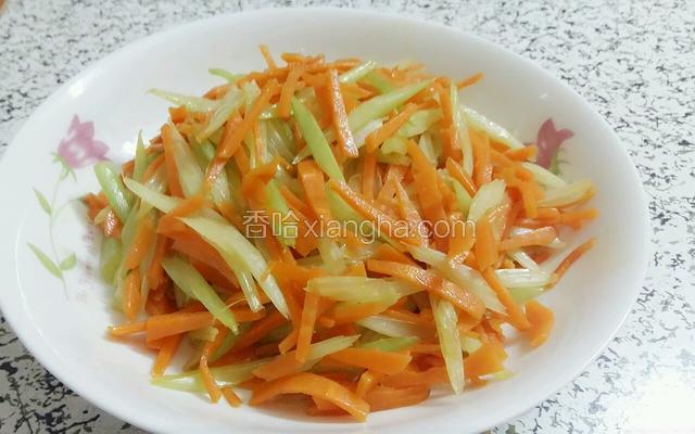 5.锅热,倒适量花生油。油五成热,放胡萝卜丝进去翻炒半分钟。