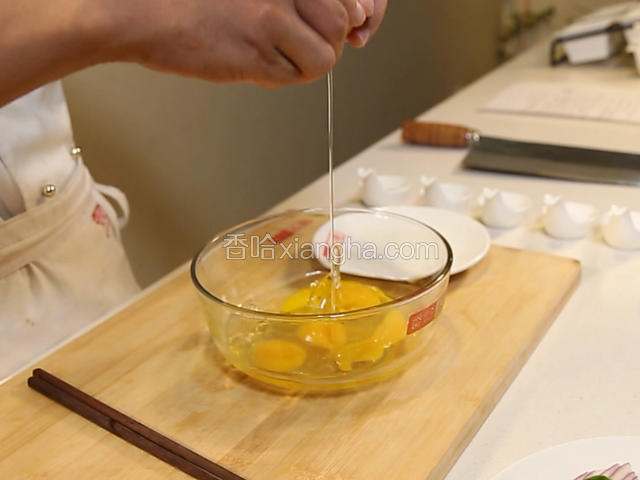 3.鸡蛋打入碗中搅拌均匀备用。