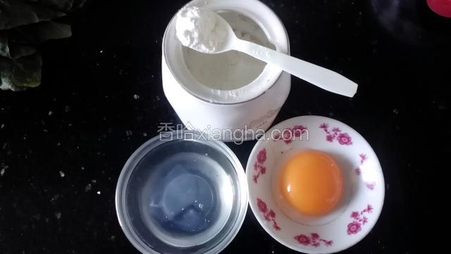 4.准备玉米淀粉,鸡蛋分离蛋清和蛋黄