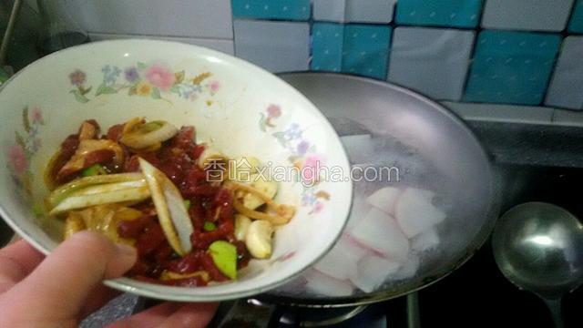 3.把羊肉片,葱,姜,蒜,生抽酱油,香油,胡椒粉一同放入碗中拌匀备用