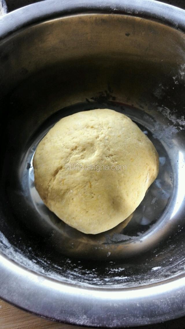 3.揉好的南瓜面团就好了,抹布盖上等待发酵到2倍大。