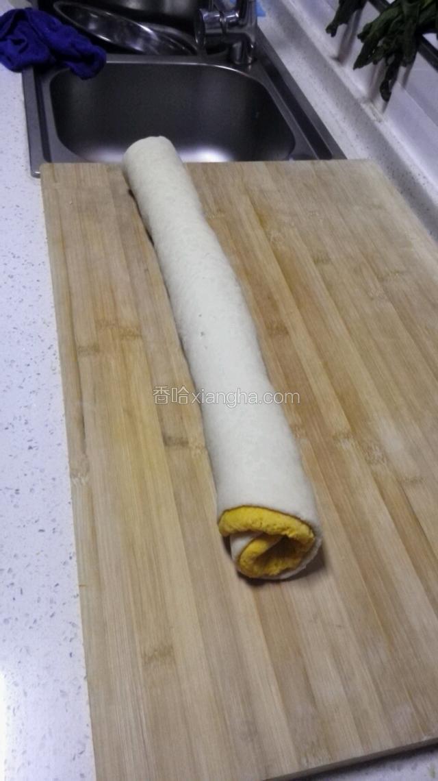 4.发酵好的南瓜面团,揉几下,排去多余空气。