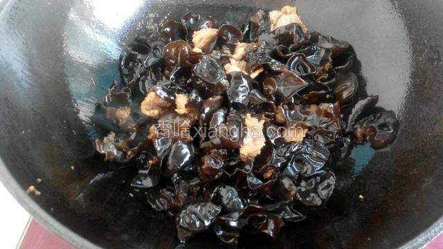 4.再放入木耳大火快速翻炒。