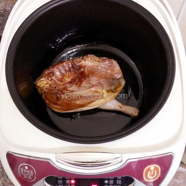 6.中途翻另一面继续盖上锅盖焗。翻面时按平时煮饭时间的一半算