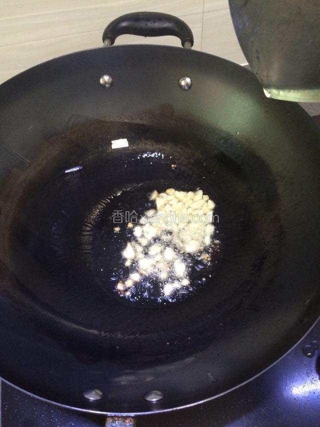 6.蒜煸香后放入青椒一起下锅翻炒均匀。加少许盐调味。