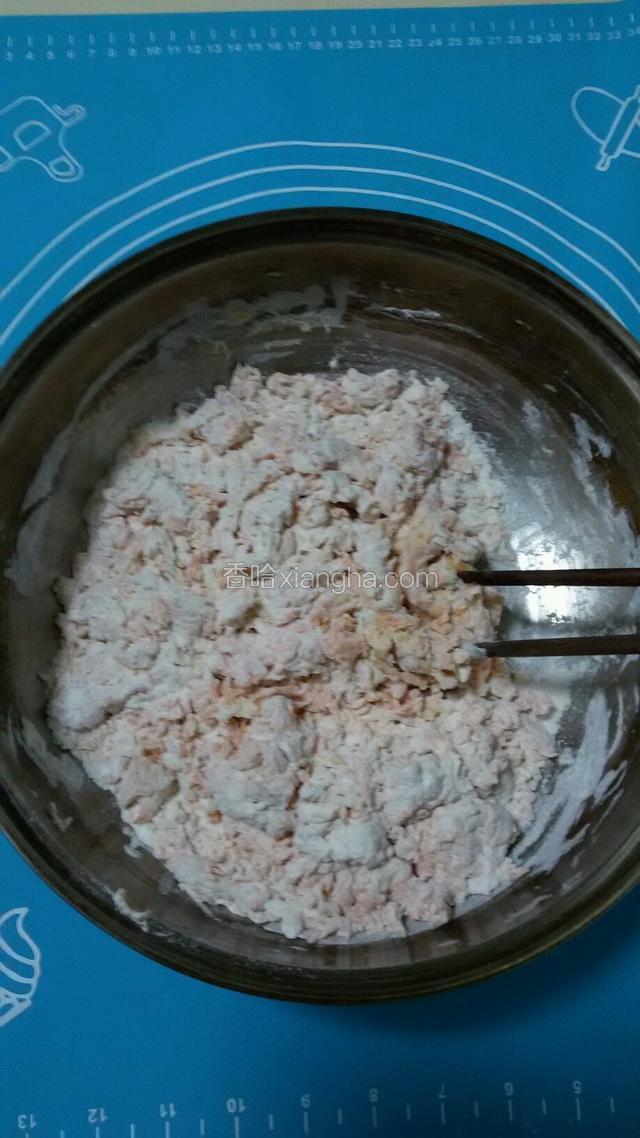 6.南瓜泥倒入面粉里,倒入酵母水搅匀