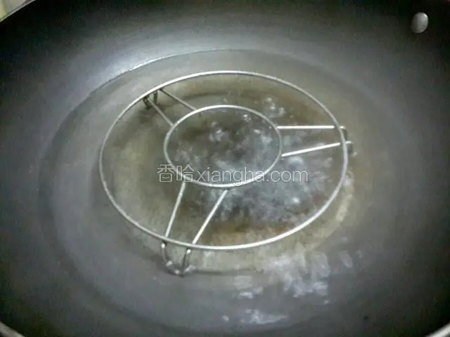 6.锅里烧水,水烧开后放上蒸架