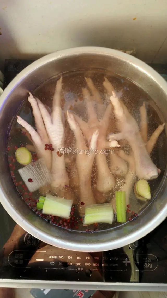 4.用凉水将鸡爪洗干净,多洗几遍,把胶质洗掉,洗到水清为止