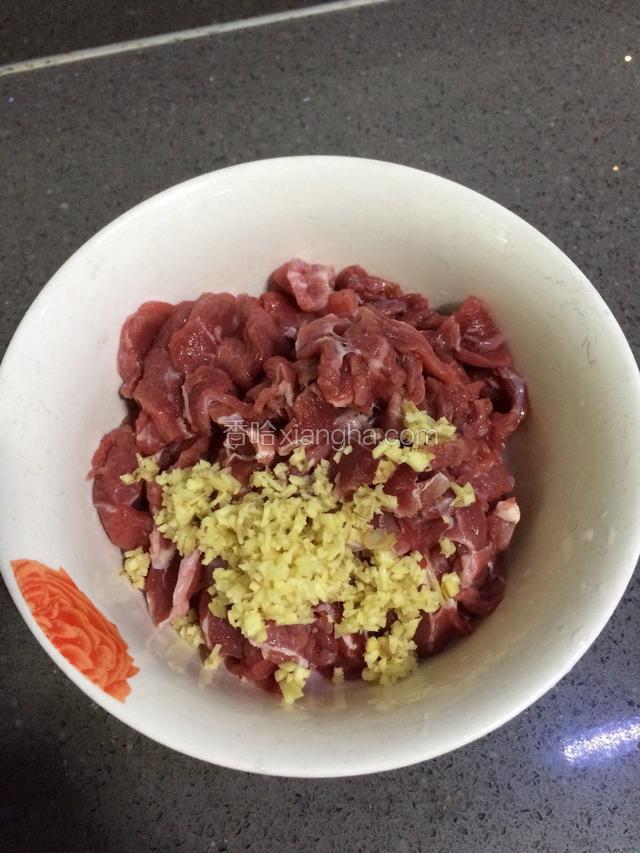 5.锅中倒入适量油烧热,油要比平时多一点,倒入腌制好的牛肉迅速滑炒至变色,盛出装入碗中备用。