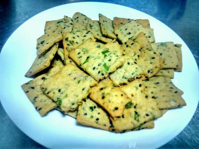 3.把120克低筋面粉,35克香油,干酵母,小苏打,黑芝麻,香葱末,盐放在一个盆里。
