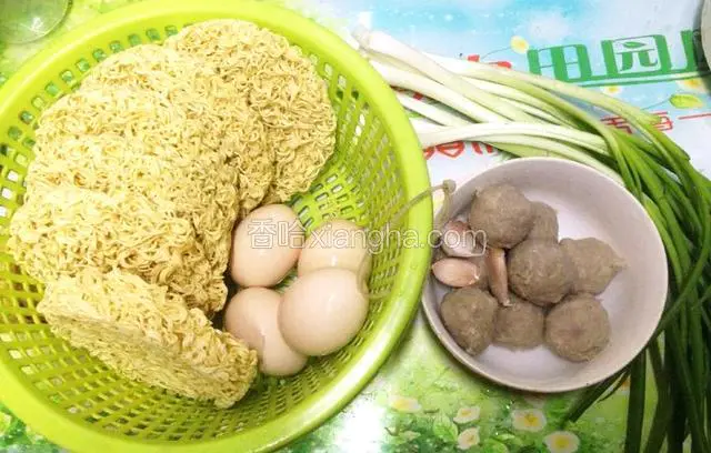 2.包心丸切片,切葱花,蒜头拍扁,鸡蛋去壳加盐打散.