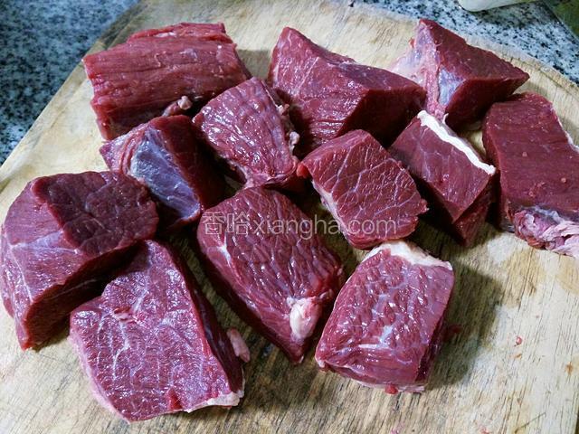 1.牛肉洗干净切大块,不喜欢筋膜的可以剔去。